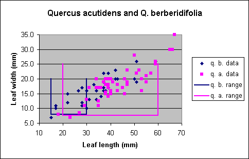 The primary discriminants in the Jepson Manual key between Q. acutidens and true Q. berberidifolia are the leaf shape and leaf margin properties. However, these two characteristics are essentially useless in discriminating Q. acutidens from the "Q. berberidifolia" population analyzed here, due to nearly complete overlap in these properties for these two species.
