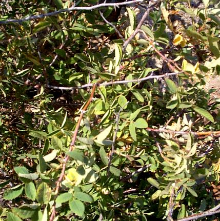 Our observations include 18 November 2001 at the Santa Margarita Ecological Reserve, and 24 June 2002 at the Santa Rosa Plateau. The latter plant is a planting at the Adobes, and illustrates nicely the change in contrast with age of the stem. Young stems show prickles with a high contrast, which gradually fade with time. In the latter image, compare the prickles on the middle-age stem in the middle to lower left of the photograph to the horizontal old gray stems at the top and middle.