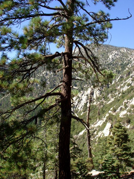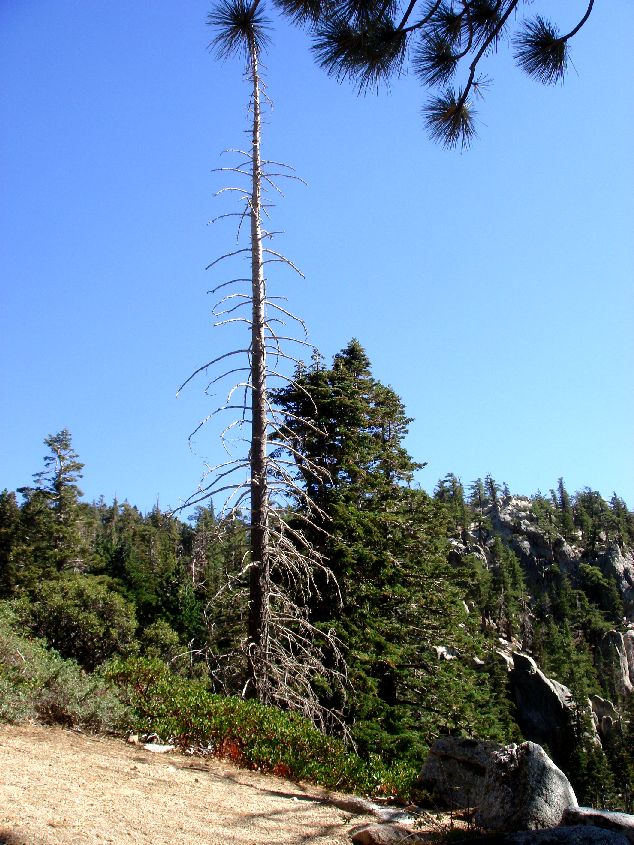 Note that the dead branches are not as curled for the Jeffrey pine, and the base of the branches are larger relative to those of the white fir.
