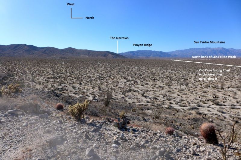 Fig. 1. View to the northwest showing the Old Kane Spring Road area on 20 February 2018, by Tom Chester. Click on the photograph for a larger version.