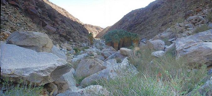 Introduction This trail is the most popular one in the Anza-Borrego Desert State Park, for several good reasons. Physically, the trail is easily reached from the Visitor Center, and the trailhead is in a campground. Botanically, the trail passes through many diverse environments, offering a sampler of much of the flora of the area. The trail ends at the most treasured destination in a desert - a shady palm grove, with year-round water and a small waterfall.