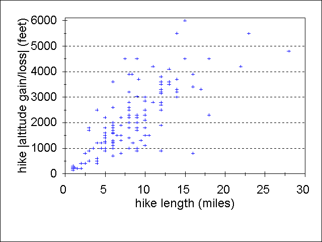- Plot of Hike Lengths Vs |Altitude gains or losses|