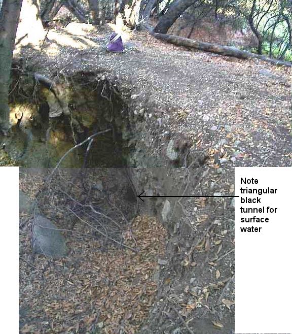 | The pipes were laid in such a manner to catch most of the flow and direct it (Figure 3). Today, that is nowhere, just in one end of the section and out the other. |