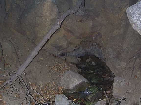 If the bridge is not completely natural, what probably happened was this. (The information in this paragraph is from Jane.) Springs were apparently sometimes "tunneled" to improve the output of the spring, albeit usually only temporarily. (See, for example, Glendora by Donald Pflueger, Chapter 8: Liquid Gold - Glendora Style, Claremont, CA: Sauders Press, 1951, p. 134.) The springs were claimed by the Deer Park Development Company, and in 1895 tunnel No. 3 located at Twin Springs was built. (History of Monrovia, John L. Wiley, 1927, Chapter XIII: Monrovia's Water Quest, p. 283.)