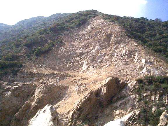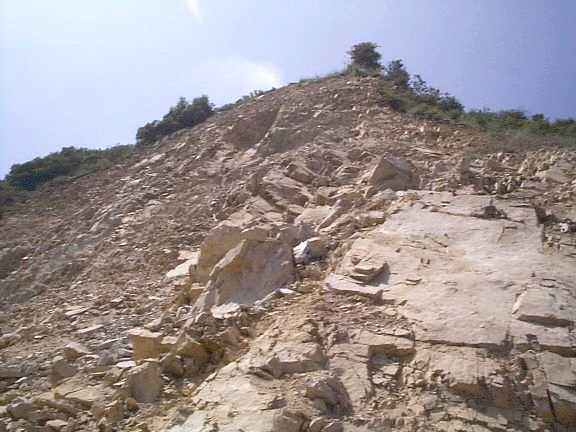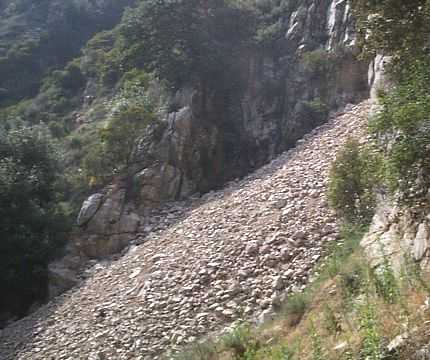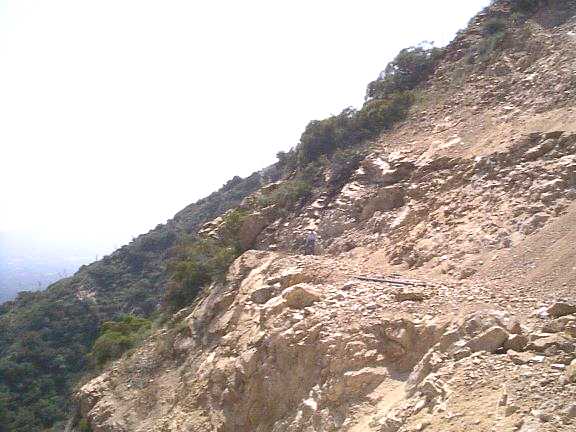 The debris pile and the cut in the cliff as seen from the Incline.