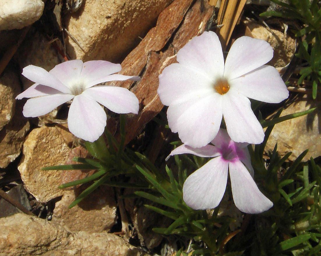 - Phlox austromontana was deleted from the checklist, since the RSA voucher was annotated by the Phlox expert Carolyn J. Ferguson in 2011. Carolyn also kindly provided us with information about how to best distinguish P. austromontana from P. diffusa, and we confirmed from the single blooming plant on 13 July 2015 that the plants here were indeed P. diffusa. Since the plants are only found here in a 2 mile x 1 mile rectangle, all apparently on limestone habitat, we think it is extremely unlikely that any plants of P. austromontana are present here. See Phlox austromontana and Phlox diffusa for more information.