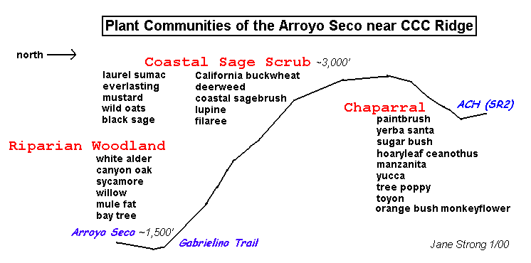 | Cross Section of Plant Communities of the Arroyo Seco near CCC Ridge | ||||||
