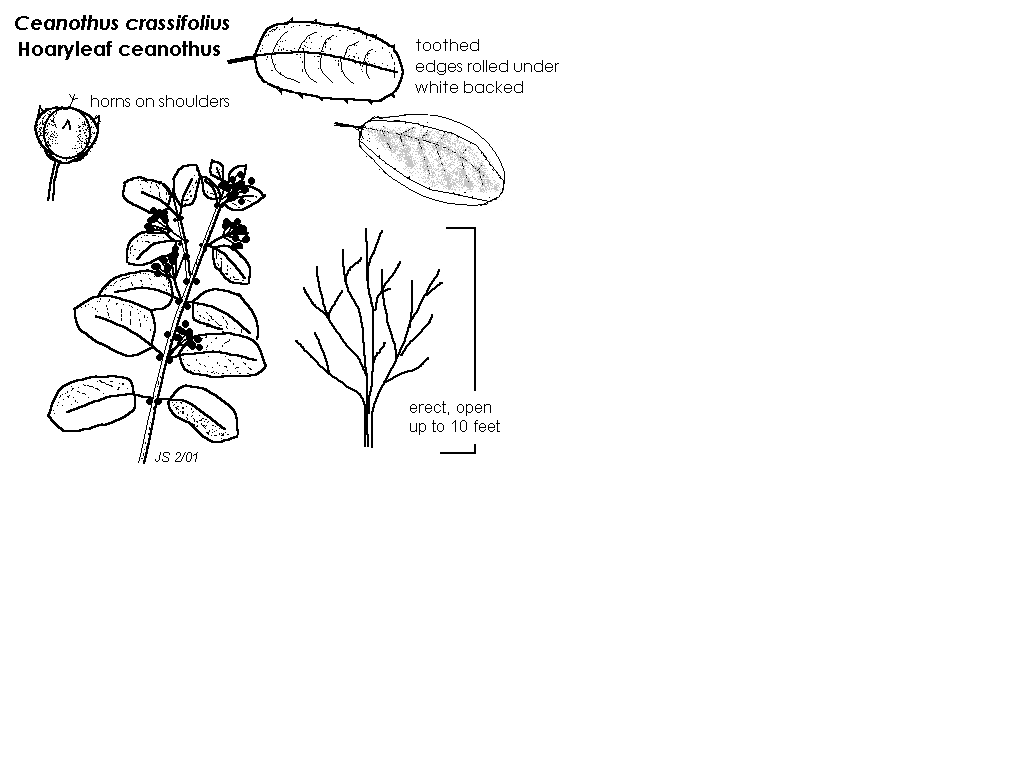 - Common name: hoaryleaf or hoary-leaved ceanothus, whiteback ceanothus; crassifolius=thick-leaved