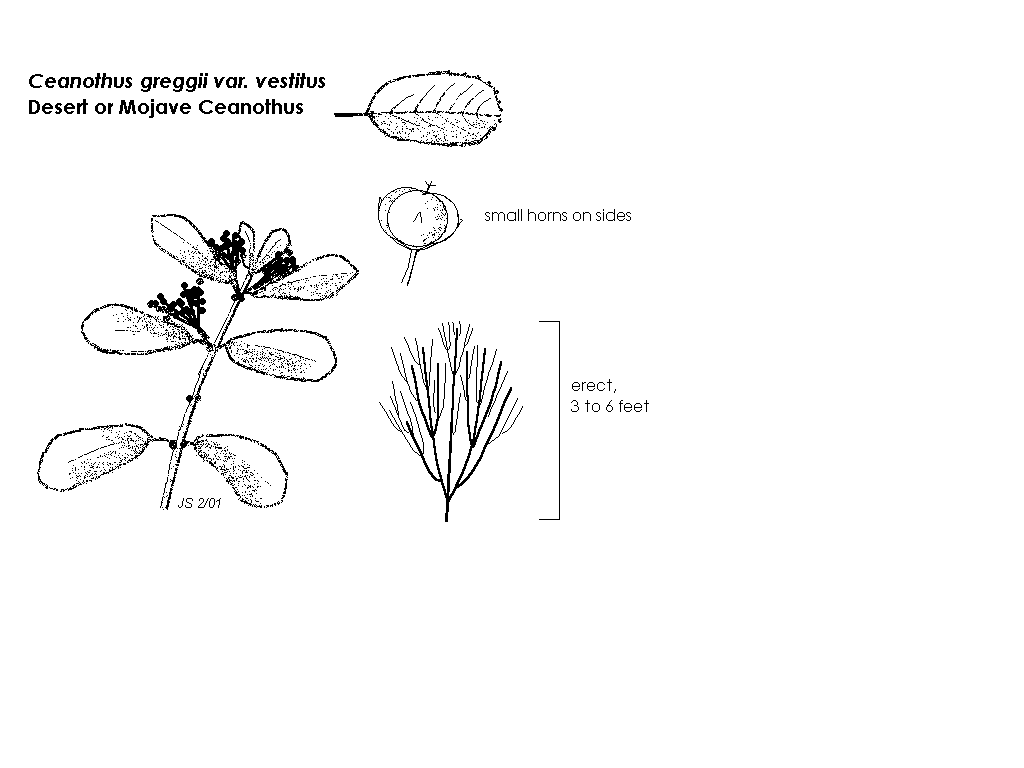 - Common name: Mojave, desert or cupleaf ceanothus; greggii for Josiah Gregg