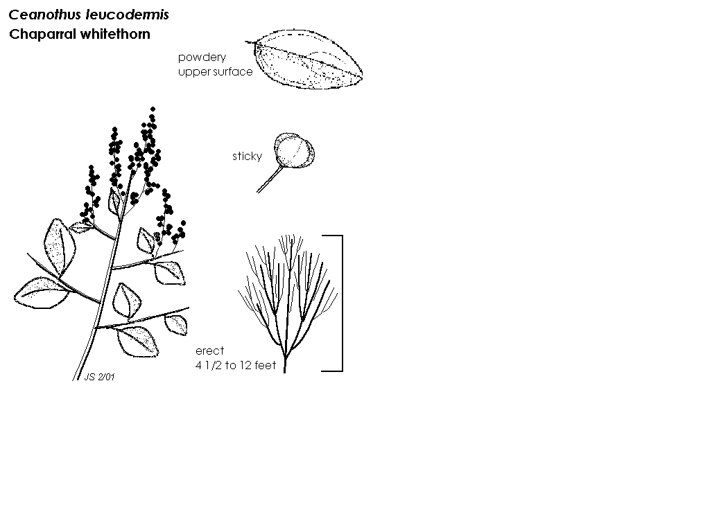 - Common name: chaparral whitethorn; leucodermis=white-barked