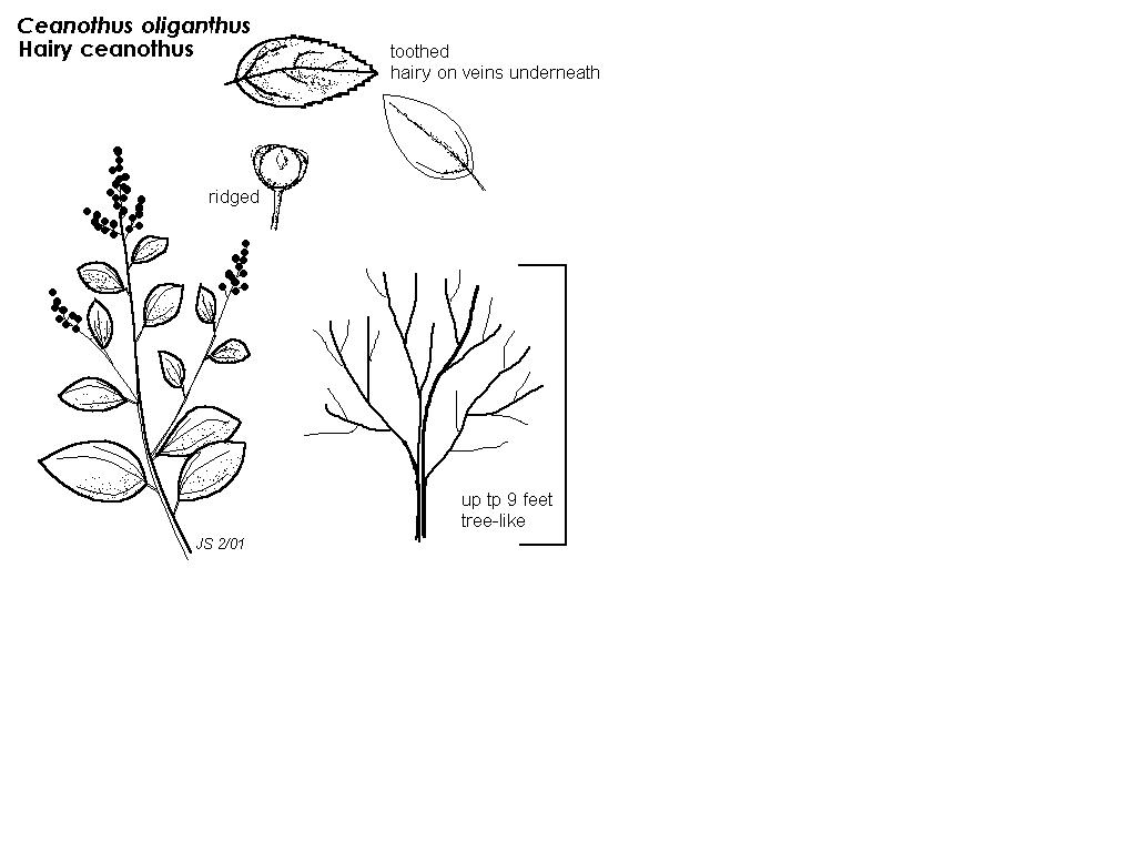 - Common name: hairy ceanothus; oliganthus=few-flowered