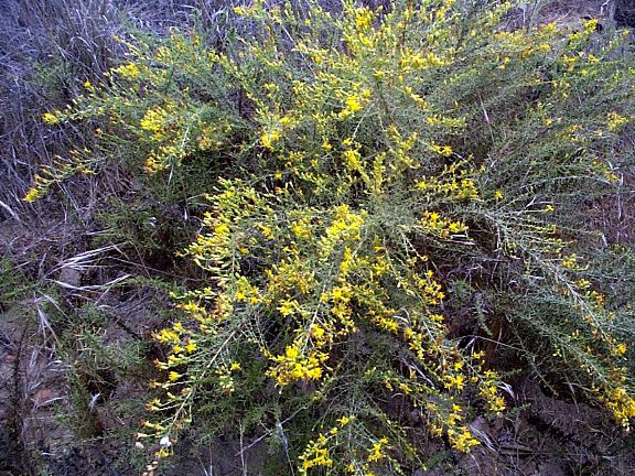 - Narrowleaf goldenbush in spring covers the north-facing desert slope with masses and masses of sunny yellow flowers for miles and miles from Kentucky Springs Canyon on Angeles Forest Highway to Mt. Emma Road to Fort Tejon Road to Valyermo Road to Big Pines Highway. It is breath-taking when interspersed with the gorgeous, purple-flowered, desert sage (Salvia dorrii).