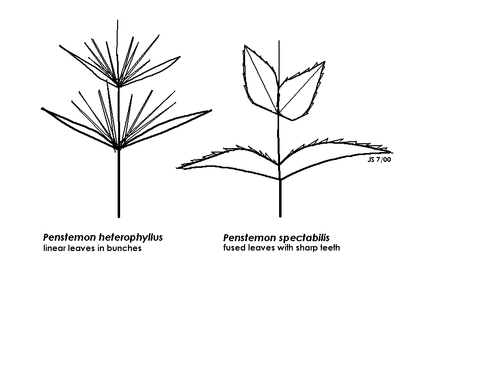 - Leaves clustered on stem; linear = Penstemon heterophyllus