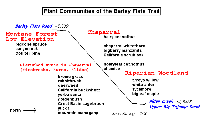 This community of plants is quite different from much of the rest of the San Gabriel Mountains. This is probably due to several factors: