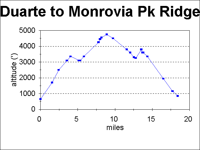 Plot of altitude versus distance using mileage from my pedometer and altitude from my altimeter.