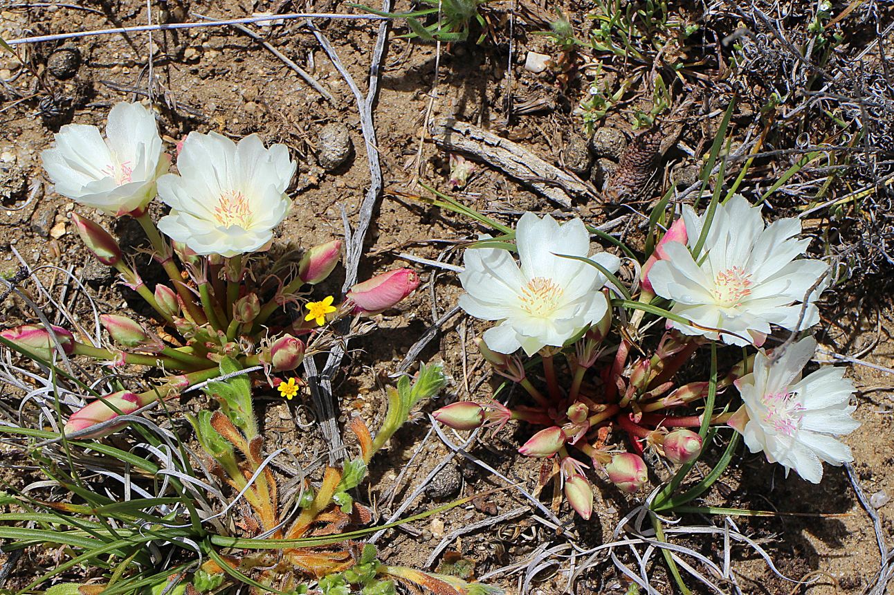 Fig. 1. Top row: Abronia villosa var. aurita, hairy sand verbena, taken 14 June 2019, showing the eastern end of Thomas Mountain on the ridgeline. Second row: Lewisia rediviva var. minor, bitter root, taken on 24 April 2017. Third row: Left: Penstemon californicus, California penstemon, taken on 27 April 2016. Right: Boechera johnstonii, Johnston's rock cress, taken on 5 March 2017.