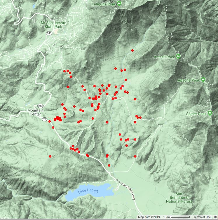 A number of species probably resulted from fire-followers after the Mountain Fire of July 2013 and the Cranston Fire of 25 July 2018. This area was nearly completely burned by both of those fires.