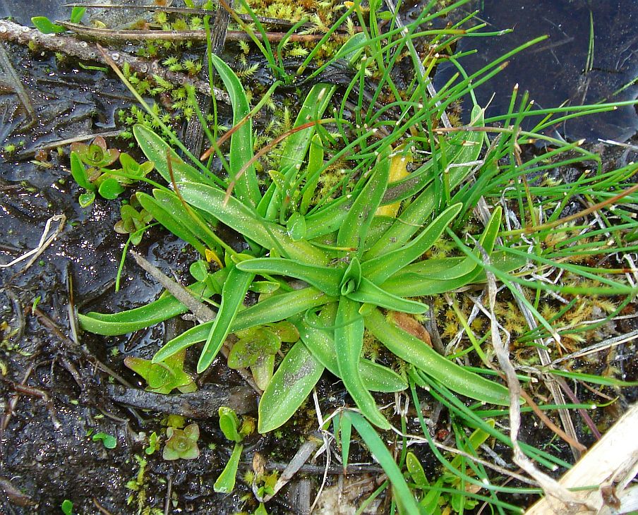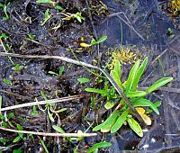 The following leaf rosettes are somewhat unusual young early-season plants of Dodecatheon alpinum, with more leaves per rosette, with most of them wider near the base than typical leaves. A follow-up late-season visit to the same location on 30 September 2011 showed normal-looking plants.