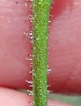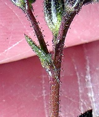 - the difference in the glands and hairs (or lack of them) on the calyces;