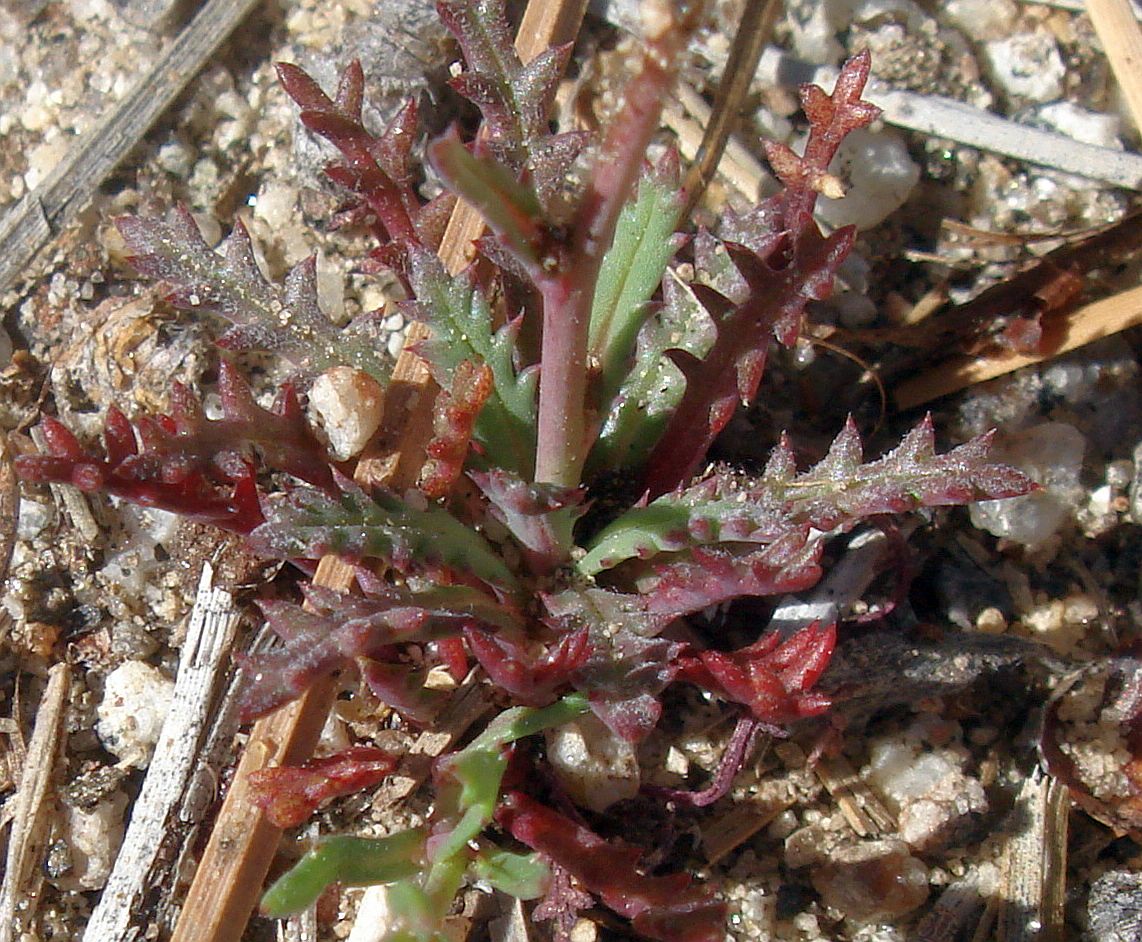 - The basal leaves are usually, but not always, clearly strap-shaped for G. diegensis, rachis width 1 to 6 mm, with entire lobes; and often not strap-shaped at all for G. brecciarum ssp. brecciarum, rachis width 1.5 to 3.0 mm, with lobes that are not entire; see pictures above.