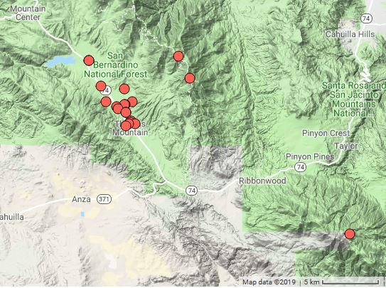 The San Jacinto Mountain Garner Valley location is the northernmost population of this species, disjunct by something like 80 miles from the nearest population in Baja.