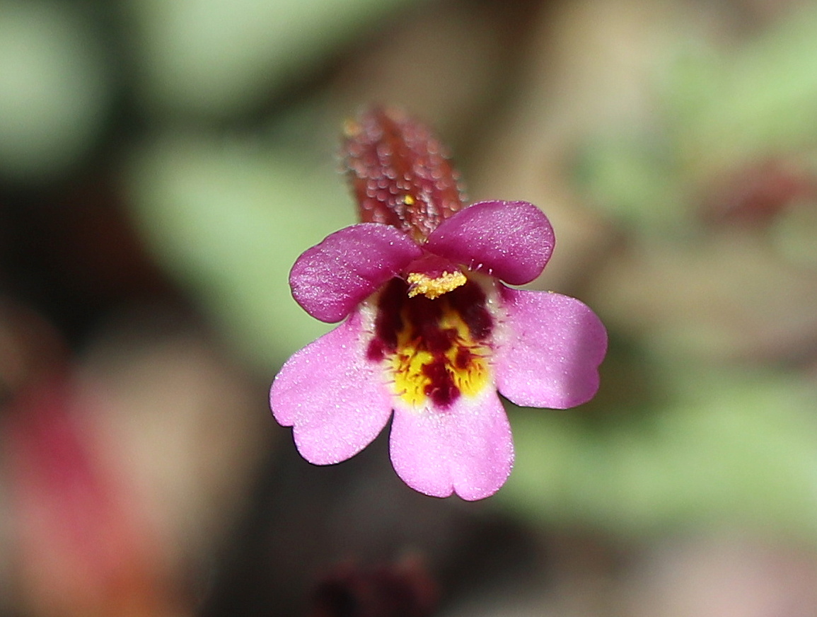 Calyx Lobe Hairs The JM key distinguishes the two species by M. rubellus having ciliate lobes, and M. androsaceus having non-hairy lobes. This can almost never be seen in pictures, since the length of the hairs is about 0.1 mm. But a hand lens should be able to see them.