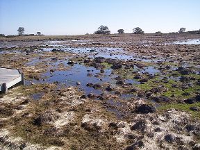 Although much of the information on this page applies to all the vernal pools at the Santa Rosa Plateau Ecological Reserve, this page primarily discusses the Main Pool on the Mesa de Colorado. This is the largest and best vernal pool at the Santa Rosa Plateau Ecological Reserve, and, fortunately, happens to be the only one that can be visited by the public, traversed in part by a boardwalk on the wheelchair-accessible Vernal pool Trail. It is also the only pool I have studied in detail, with over a decade of detailed observations.