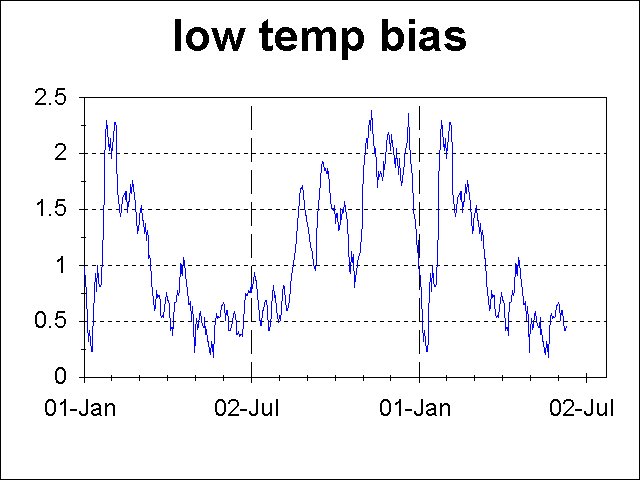 I was a bit surprised that the bias was so low, but it is probably due to the high correlation of temperatures from day to day and the relatively small amount of missing data.
